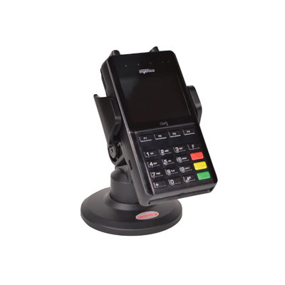 - The payment terminal snaps onto the 3″ compact mount which holds the terminal in place
